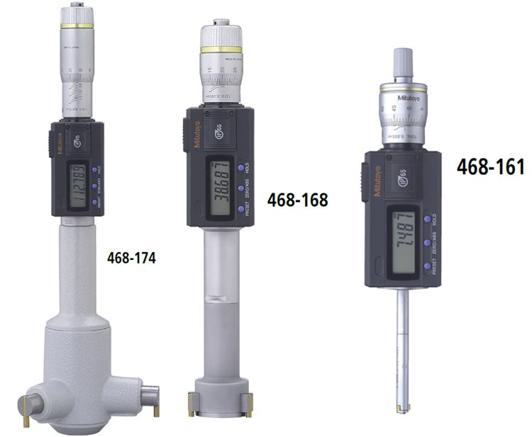 • 帶有大型LCD顯示的三爪孔徑千分尺(字幅高度=7.4mm)。